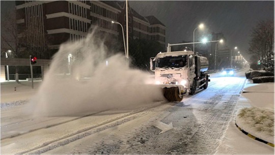 為確保城市主干道及橋梁暢通,建發(fā)公司緊抓夜間作業(yè)窗口,秉持“人歇車不歇”原則,調(diào)配精良設(shè)備與人員,對(duì)易結(jié)冰的橋面及主干道進(jìn)行高強(qiáng)度清除作業(yè)。作業(yè)人員利用后半夜車流較少的時(shí)機(jī),集中操作雪滾車、撒布機(jī)等設(shè)備,并同步在關(guān)鍵路口鋪設(shè)防滑墊。截至20日17時(shí),累計(jì)投入各類機(jī)械16臺(tái)、作業(yè)人員320名,撒布融雪劑60噸,有效保障了主要道路的安全通行。